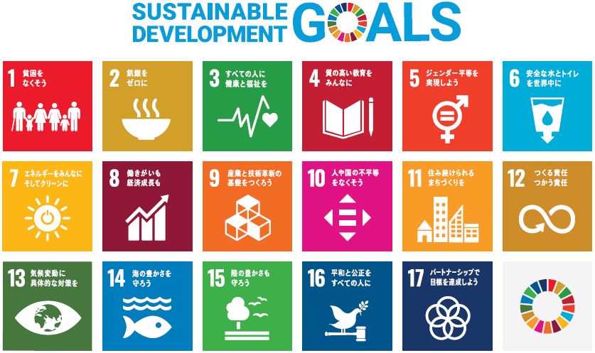 2015年、持続可能な世界を実現するために、国連加盟国193カ国全会一致で「持続可能な開発目標(SDGs)」が採択されました。